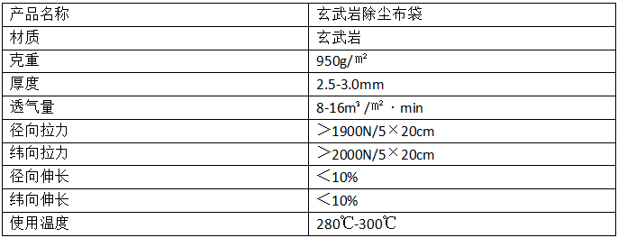 玄武巖除塵布袋技術參數(shù)